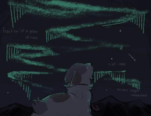 "Вчера Лиса попросила меня утопить мр-рмышь в реке, чтобы она разрешила мр-рмне убивать других мр-рмышей! У меня их и так-то ловить еле выходит — а если она мр-рмне запретит?!" — гулко разнеслось по Пещере Остроконечных Камней. А потом по шерсти Почемучки пробежался весёлый горячий ветер и тут же стих. А потом горячее солнце утонуло в Месте-В-Котором-Оно-Тонет-На-Каждом-Закате и уснуло в лисьем животе. "Вот погреется немножко, погреется — а там и обратно можно. Нужно же кому-то вас, шерстяных, баюкать", — хихикает где-то в каменных коридорах — а потом лисий хвост, мягкий и очень рыжий, пушится на ночном небе и где-то в глубине глаз всех застывших в недоумённой тишине. | ![]() |